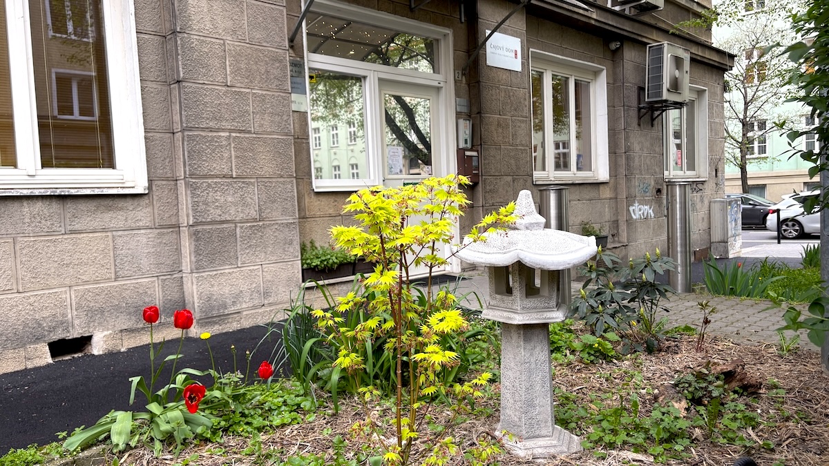 Keď kvietky a kríky pred Čajovým Domov rozkvitnú, tešia sa im dospelí aj deti. Pre najmenších sme pripravili aj informačnú tabuľu o vtáčikoch, ktoré možno pozorovať pri krmítkach v meste a čo im do nich nasypať.